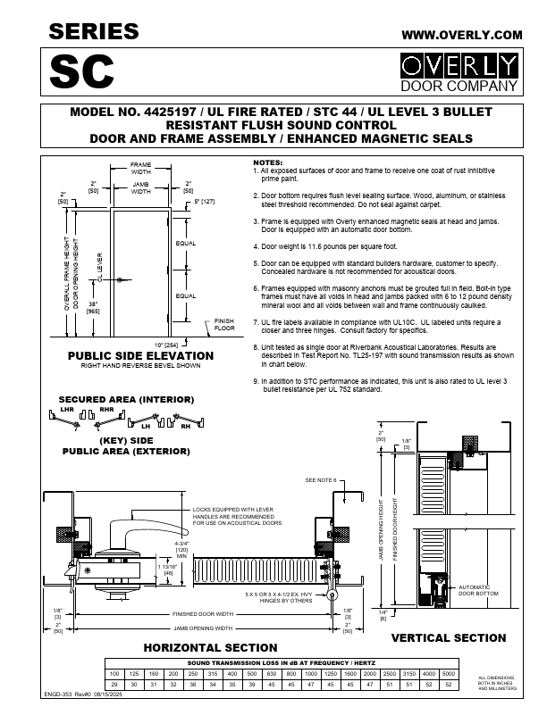 In addition to acoustical testing, Overly has successfully tested this product to the latest UL fire test standard UL10C/UBC 7-2 (positive pressure).