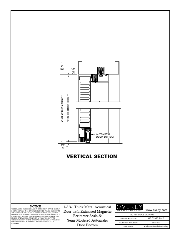 1-3/4" Thick Metal Acoustical Door with Enhanced Magnetic Perimeter seals & Semi-mortised Automatic Door Bottom
