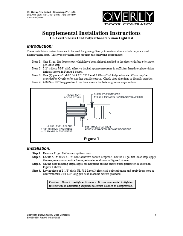 Supplemental Installation Instructions for Split-Frame Acoustical Doors - Exposed Fastener